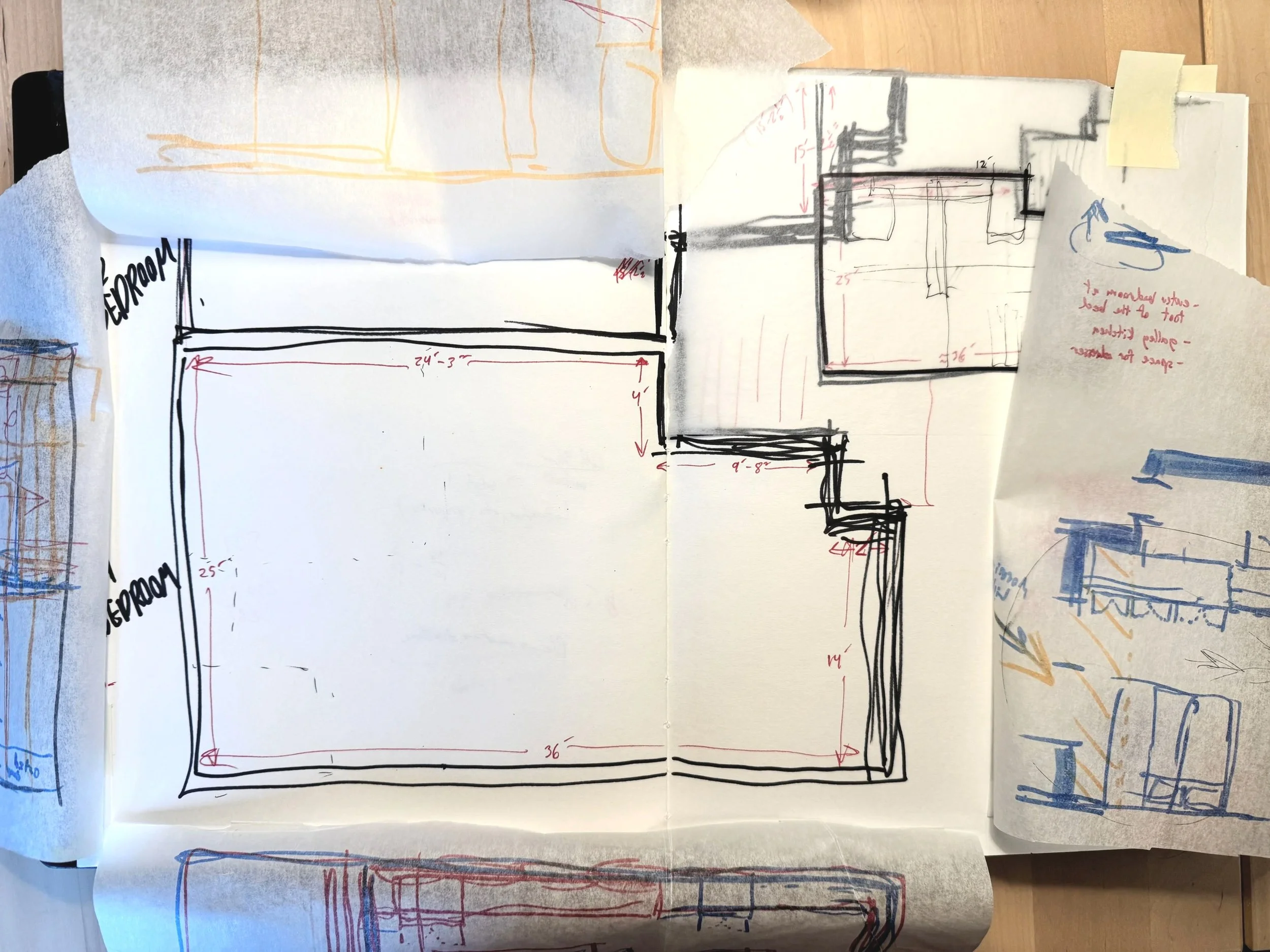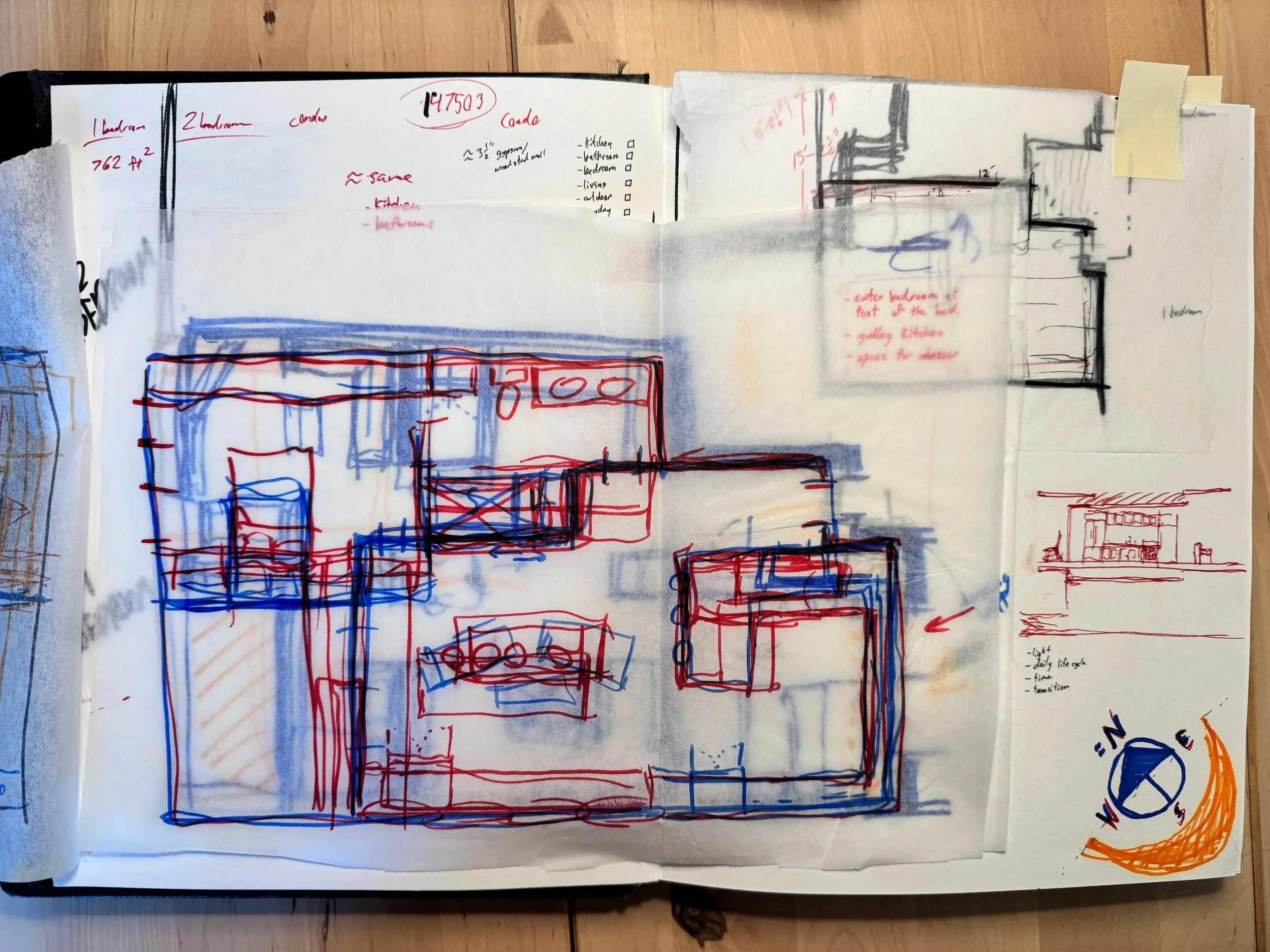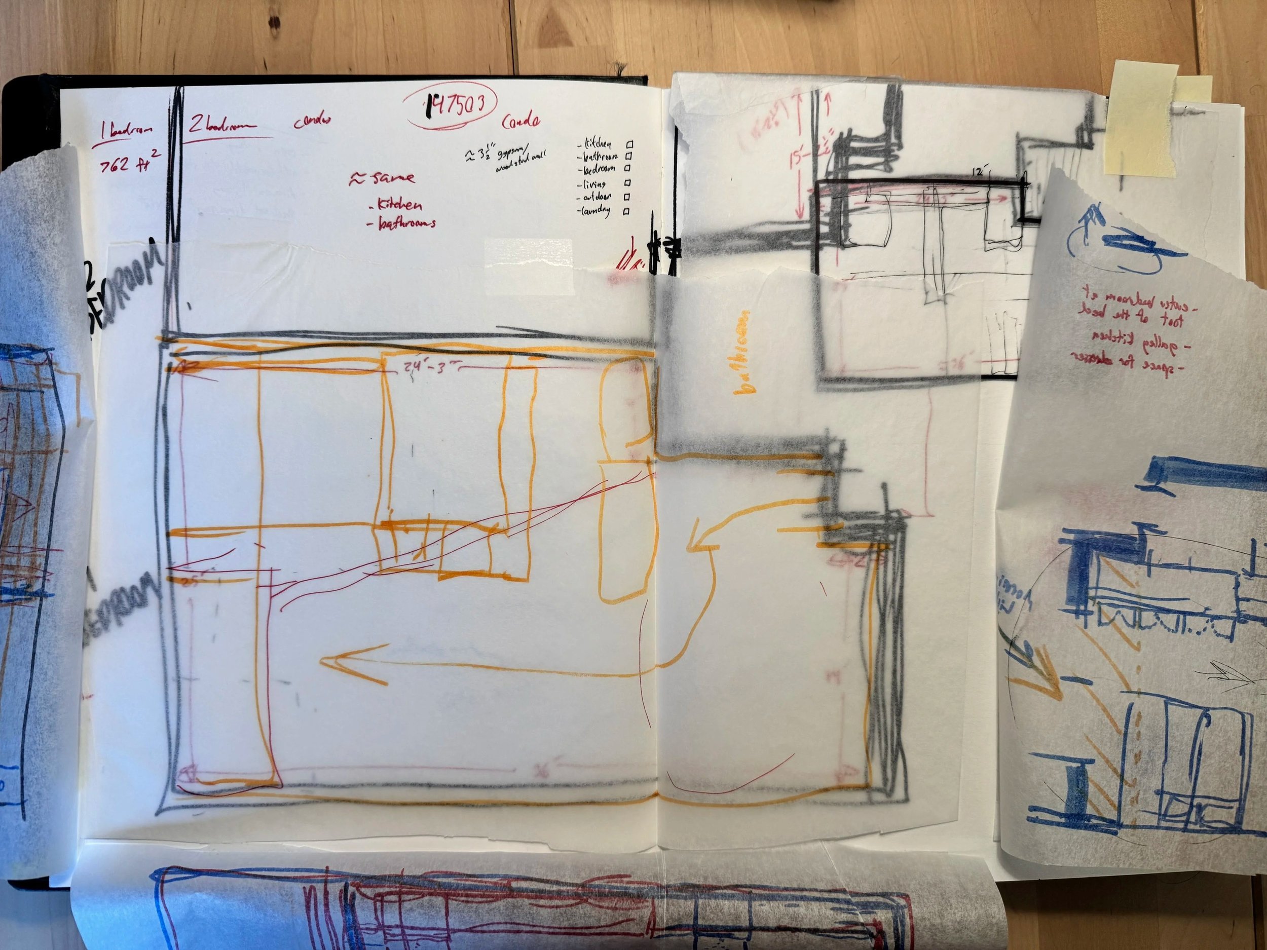 Focus on this project went to the development of unit plans that would fill 2 variations of a predetermined shell used for 4 of the 5 apartment buildings. A 1-bedroom unit and a 2-bedroom unit would be grouped together and repeated up 4 floors to make up the 2 smallest buildings, while the larger 2 buildings would mirror this configuration, doubling the number of apartments within.