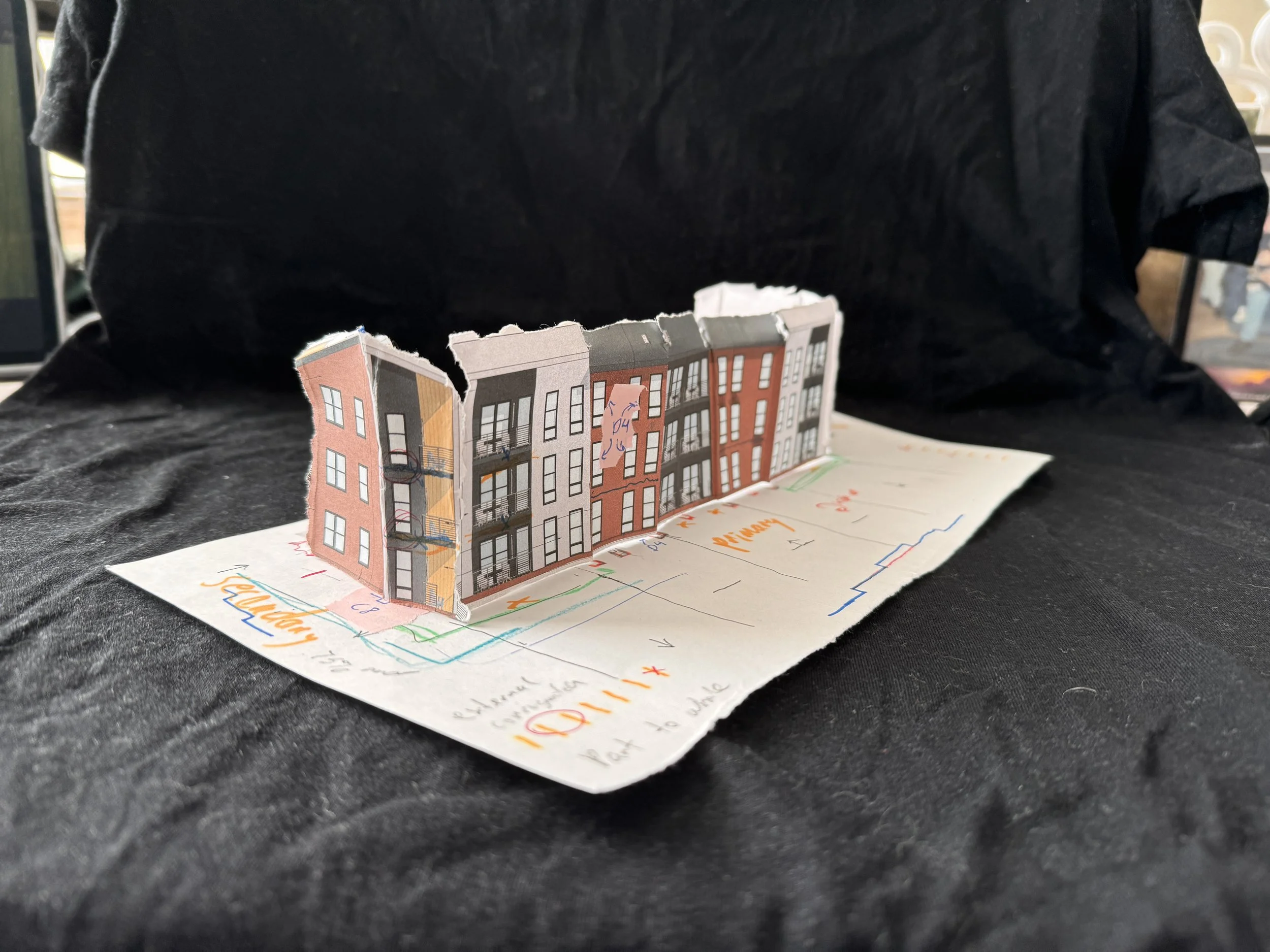 City building codes gave limitations to the facades, regulating materials, percentage of windows, expressions of amenities, and more, requiring a continuous dialogue with the city and our development partners while the project developed. Designs needed to comply with regulations while appealing to our partners’ vision for the site. Iterations of the facades changed as the conversations continued, and diagrams were developed to present each concept’s adherence to the city’s codes.